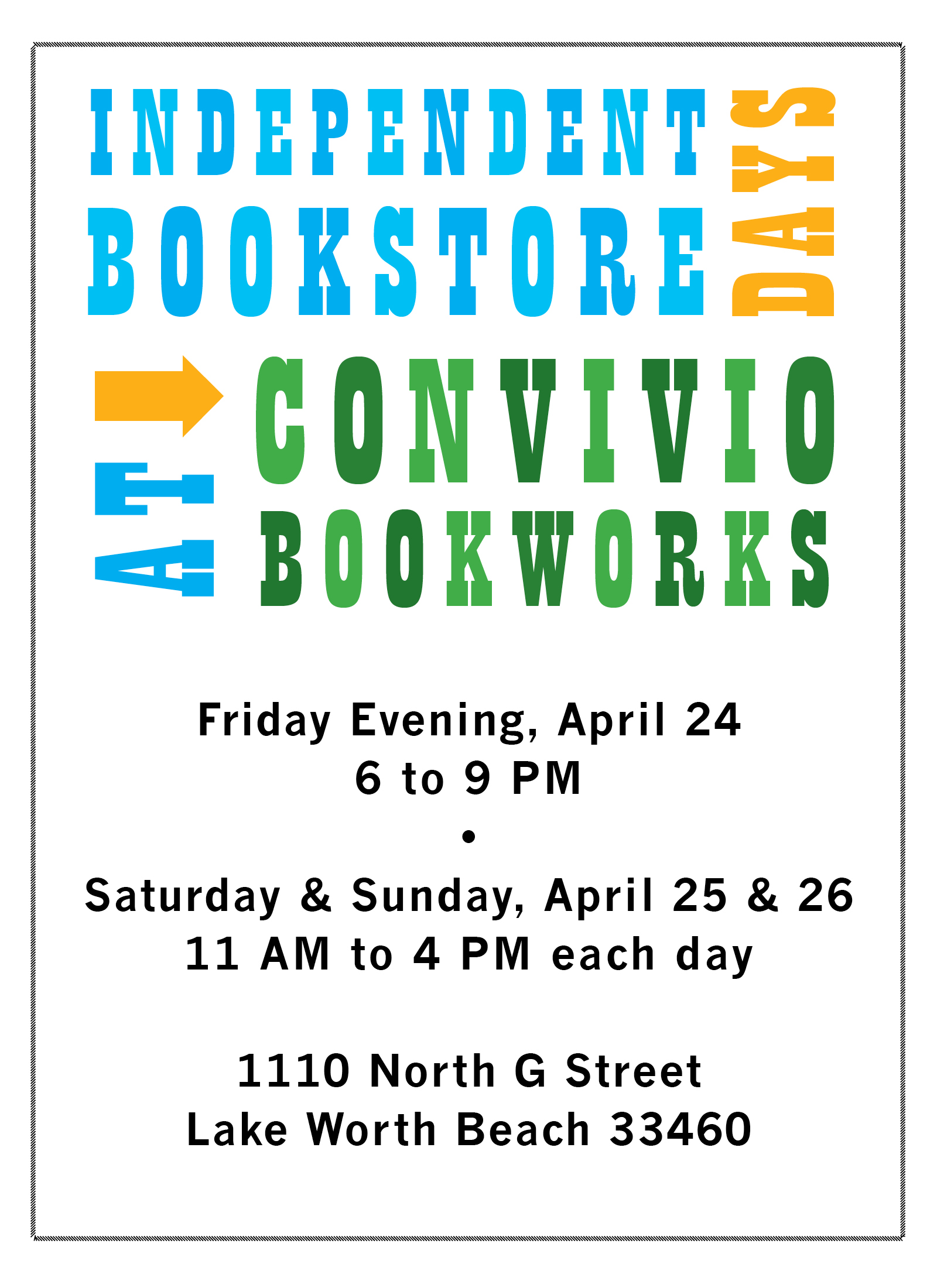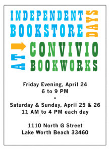 So then, the last Saturday of April is known as Independent Bookstore Day, and now that we’ve got a brick & mortar shop that fancies itself a bit of an independent bookstore, it’s a day that’s taken on some significance for us. Last year we celebrated for the first time with a weekend event that ran Saturday and Sunday. This year, we’ve added Friday evening, as well. And that’s tonight. If you’re local to Lake Worth, please come join us this weekend for our Independent Bookstore Days celebration! We’ll be open tonight, Friday April 24, from 6 to 9 PM, and then Saturday & Sunday, April 25 & 26, from 11 AM to 4 PM each day. We’ll be operating our 1950s Nolan Proof Press (you’ll be printing the cover for a book on that press), and then we’ll teach you how to make your own single signature pamphlet book using that letterpress-printed cover. We’ll be writing a Community Exquisite Corpse story (the old literary game invented by the Surrealists in which you write two sentences based solely on the previous two sentences that were written). We’d love for you to write two sentences of your own. And we’ll be serving my sister’s homemade cookies (three kinds, I think) and our newest coffee arrival at the shop: Horn & Hardart Automat Coffee, roasted in small batches in Philadelphia. The printing, the book, the story, and the coffee and cookies: these are all free and on the house. Books and coffee, after all, go together like peas in a pod. We’re also open, of course, for wonderfully eclectic shopping… including an awful lot of wonderful books.