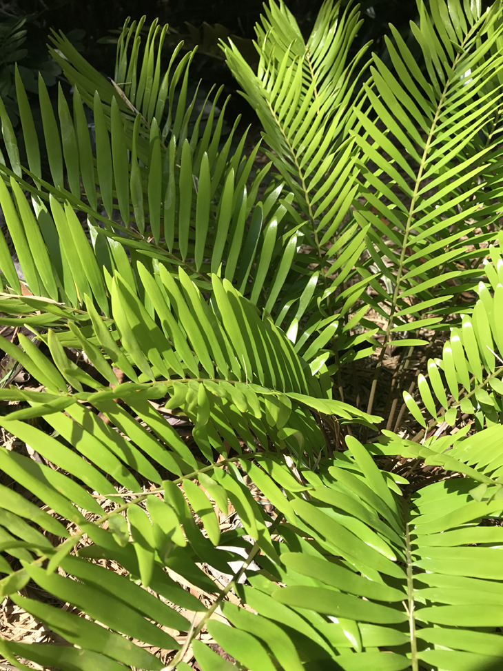 Cover star on this month’s calendar: another of our native Florida plants, the Coontie, also known as Florida Arrowroot. Coontie the more common Seminole name. The leaves are just coming in as June arrives, bright green.